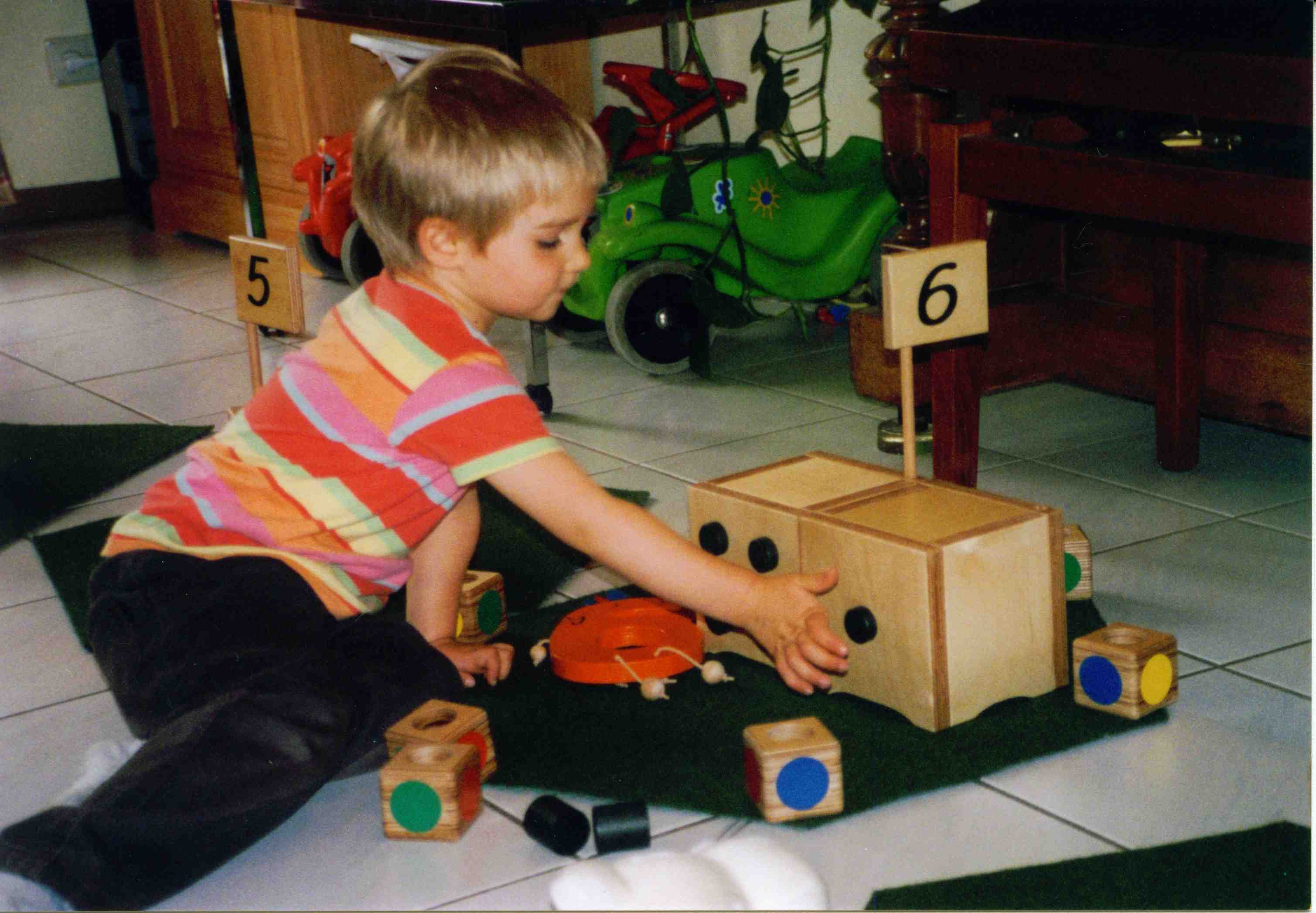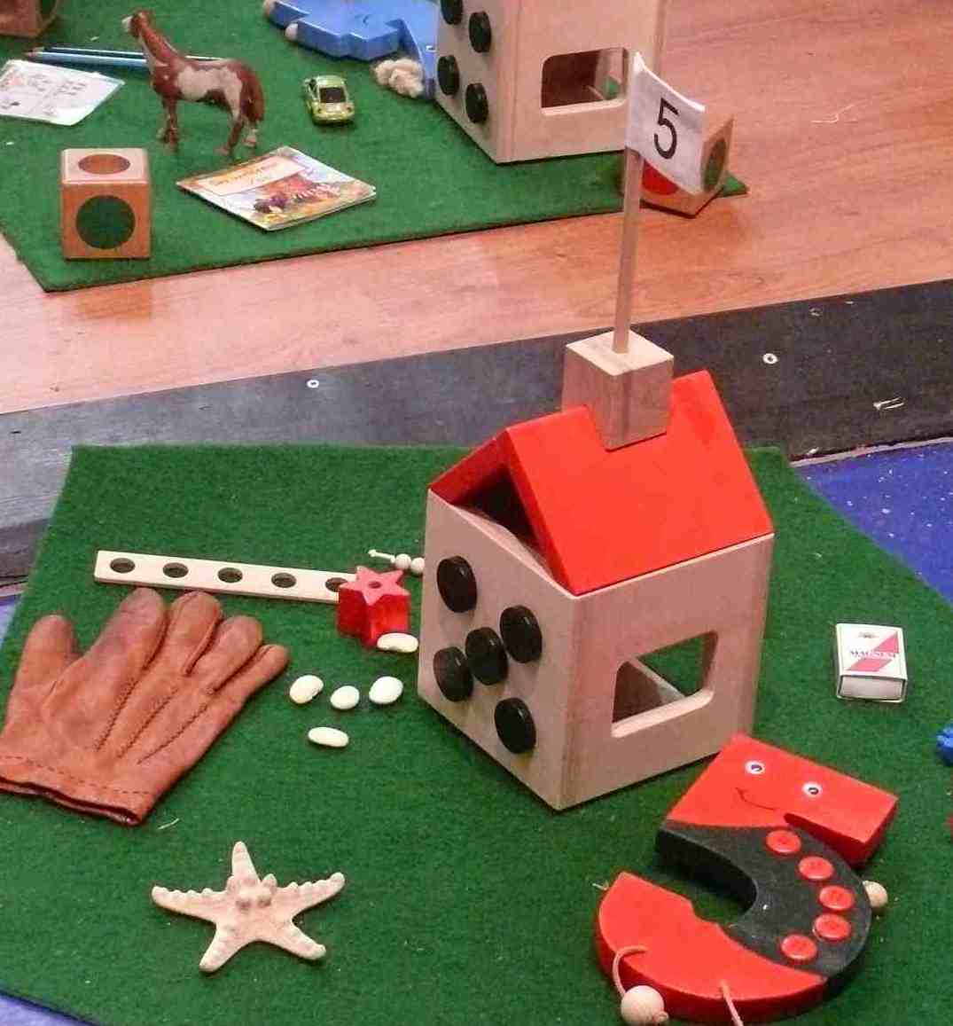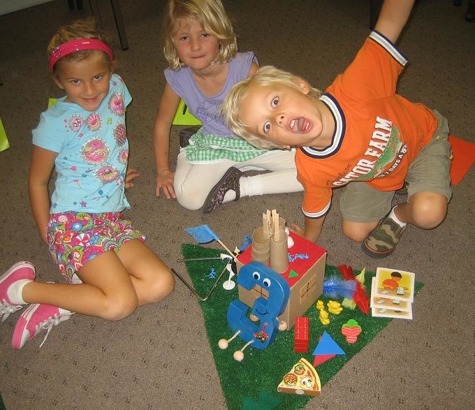 Number Lane Number Lane shows the figures 0 to 10 (or 20) and leads the way to Number Town. By moving on Number Lane and playing numerous fun games on it, children become familiar with the ordinal aspect of the basic numbers. Walking forward and backwards, the children make first experiences in addition and subtraction. The important knowledge of successor and predecessor is easily adapted. Number Lane can also be used to combine ordinal and cardinal aspect. Number Puppets Number puppets animate the abstract numbers, communicating that numbers are something nice and lovable. They may tell a tale, help arranging their garden, or be part of role plays. Number Gardens The Number Gardens correspond to the geometric aspect and are arranged in a circle, representing Number Town. Access is strictly limited! Children may pick 4 bricks, 4 pens, or 4 beans and place them in the garden. Thus, they experience the cardinal aspect as well as invariancy. A horse is also allowed due to its 4 legs. Yet it also has 1 tail, 2 eyes, 2 nostrils... Children are strongly motivated to find out, discuss, and decide where to put an object. This fosters cognition, language skills, social competence - and general knowledge. Number Houses Each number needs a house and, obviously, Number One’s house has 1 window, Number Two’s has 2, and so on. The trick is that as of Number Six, each number gets two houses: Number Six’ house has 5+1 windows, Number Seven has 5+2, etc. This concept corresponds directly to the children’s hands. It transports the idea that numbers can be decomposited. And, highly important, it supports children acquire simultaneous entry of quantities. Number Towers The children build a Number Tower in each garden which gives a linear visualization of the number. If realized as fourcolored bricks, the children can make experiences with various aspects of numbers as well as possible decompositions. Hodgeypodgey the Goblin and the Fairy of the Numbers These two figures account for the magic thinking of children. Especially Hodgeypodgey the Goblin is highly appreciated because ever and again he messes around in Numberland. The children love to find out what is wrong and to correct the mistakes. The goblin is also a perfect scape goat for own mistakes... But there is also the Fairy of the Numbers who can be called with a spell and who helps to get things right again. Number Tales Children love tales and enjoy stories about numbers. For example, to cure the sick Four, a tea is made out of four bits of four different herbs out of her square herb garden. After four minutes brewing time, four spoons of honey are added and stirred four times - curing immediately... The children can listen, talk about the tales, make role plays, and so on. Interesting details for the general knowledge are embedded in the tales and, possibly, picked up later on. Or how about making up your own number tale? Number Songs Rhymes, music, and singing have highest value for children. We composed a refrain and songs for each number. Their beat and number of tones correspond to the number as well as the content does to our number tales. As an alternative or in addition, popular nursery rhymes or songs can be included as well. My book of Numbers “Let’s visit Numberland” offers lots of areas of creative work. A folder going along with the project is highly treasured by the children and a good document of a child’s development. Games and Activities Each visit to Numberland can be the basis for lots of activities around the specific “number of the week”. Fun games, related songs or rhymes, designing or moulding, exploring specific questions, sports or outdoor activities... Home |