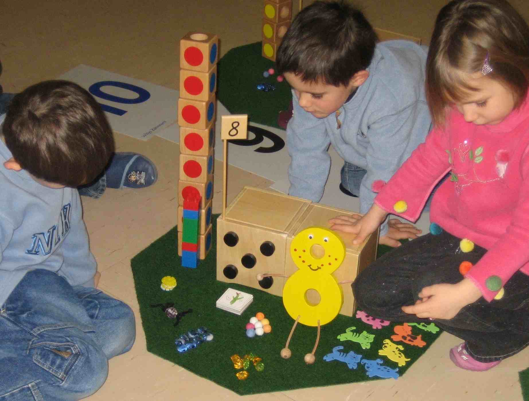 Mathematical understanding and more "Let's visit Numberland" was developed to appropriately address the evolving interest of small children in counting, sets, numbers, comparing, and geometric shapes. It supports children to build the bridge between the understanding of math they were born with ('1,2,many') and the formal language of mathematics we developed to describe and handle things. In Numberland, Children acquire a profound, well structured mathematical understanding of the number range 0 to 10 (building the fundamental basis to their mathematical understanding) and the numerals to 20. Yet the children benefit far beyond the matter itself: Language, self-esteem, concentration and cognition, motivation and creativity, social, motor and music skills are enhanced as well. The edge of "Let's visit Numberland" lies within the embracing approach: The concept allows a child to experience the entire aspects of numbers with the entire self, i.e. body, mind and spirit. This way, children in their daily play develop a multi-faceted, positive image and a deep, lasting understanding which they can build on. As an open and didactic concept, „Numberland“ is not a programme but rather a central theme that helps strutcturing. The specific elements encourage both children and staff to bring in own ideas. It can be easily adapted to individual needs and age brackets. Popular and estalished activities can be brought in and „Numberland“ can be a trigger for the further exploration of topics, e.g. bees with their six legs and their hexagonal combs. Basic thoughts "Let's visit Numberland" combines findings from brain research, developmental psycho-logy, educational science and didactics of mathematics. It is consistently designed from a child's perspective and, therefore, considers how small children see the world, builds on what they know already, what they can understand, like, and need. This explains why "Let's visit Numberland" is so highly moti-vating for children. It is very natural for children to travel to a country where numbers live: For a while, children regard regard everything around them as being alive. Anything magic strongly appeals to small children and going with that is a strong emotional thinking. In addition, children of that age need tangible experiences of the inherent abstract character of mathematics. The concept On their fantastic, cheerful journey to „Numberland“, the children meet the numbers 1 to 10 as nice, living characters who motivate them to deal with mathe-matical aspects and coherences. Number Lane shows the way to Number Town where each number lives in its characteristic, geometrically shaped garden. The children furnish these gardens with houses, towers, and other things going with the number. There is a cheeky goblin messing around and a nice fairy sorting things out. Tales and music, lots of active games and other things children love complement the experiences. Scientifically proven We could prove that within only ten weeks children aged 3 to 6 gained the mathematical competence and understanding they normally would have achieved only within one year. The same was true for the language competence of the children - a highly important finding since language is the key to education. The findings were also true for under-privileged children with partly very poor understanding of the German language. A second study from the University of Heidelberg confirmed our results. Summary of the research results (pdf, 274 KB) Full article on the research study (Translation of the article published in German journal) (pdf, 2 MB) Wide acceptance Nursery schools, preschools, primary schools and special schools in Germany strongly benefit from “Numberland” which they adapt to their special needs. 40.000 books have already been sold. „Numberland“ has started to find its way to Texas, Poland, Russia, Romania, Bulgaria, India, and Thailand. Teachers approve the concept as an optimal preparation for school and even use it in first grade. In industrial Ludwigshafen with many underprivileged children, teachers diagnose a higher base level and more self-esteem, leading to more motivation and participation. Kindergarten and preschool teachers alike are enthusiastic about the all-embracing advancement of the children. They appreciate how well our open concept can be combined with their schedule and how individually it can be realized. Children usually get completely absorbed in a “Numberland” project and transfer it into their daily play.